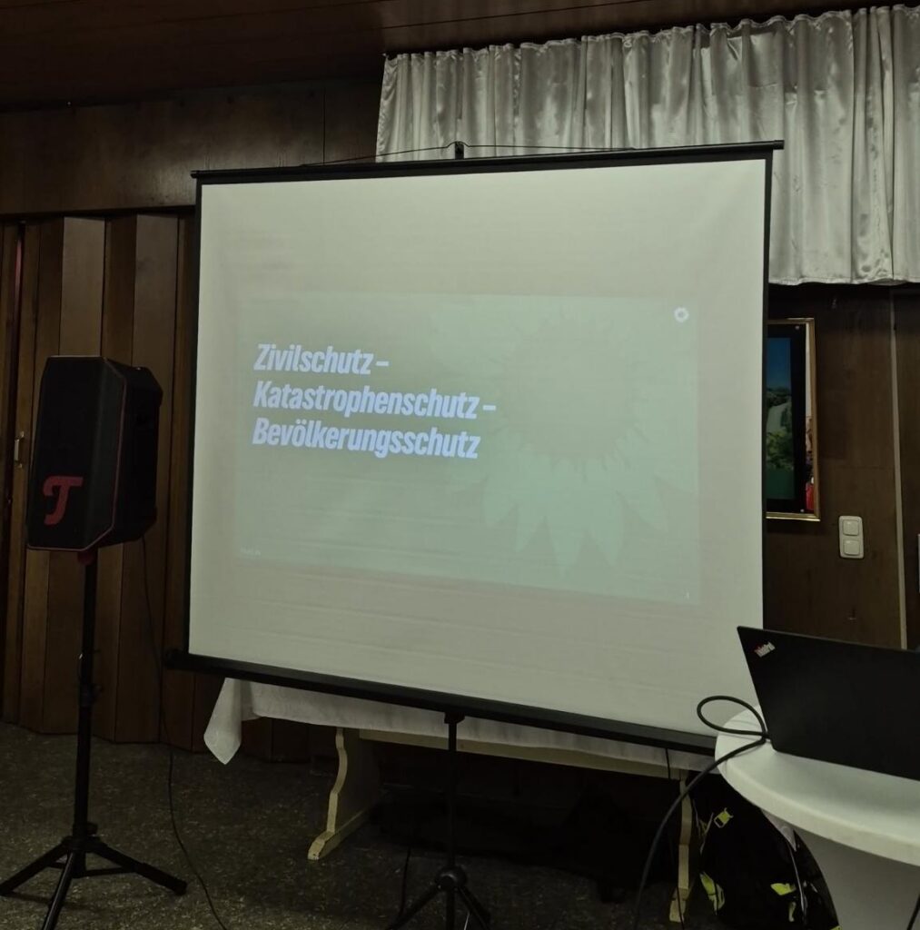 🔹 Daniel Stephan, Stadtrat-Kandidat, erläuterte die Aufgaben des Amtes für Zivilschutz und wie wir uns gemeinsam besser auf Krisen vorbereiten können.