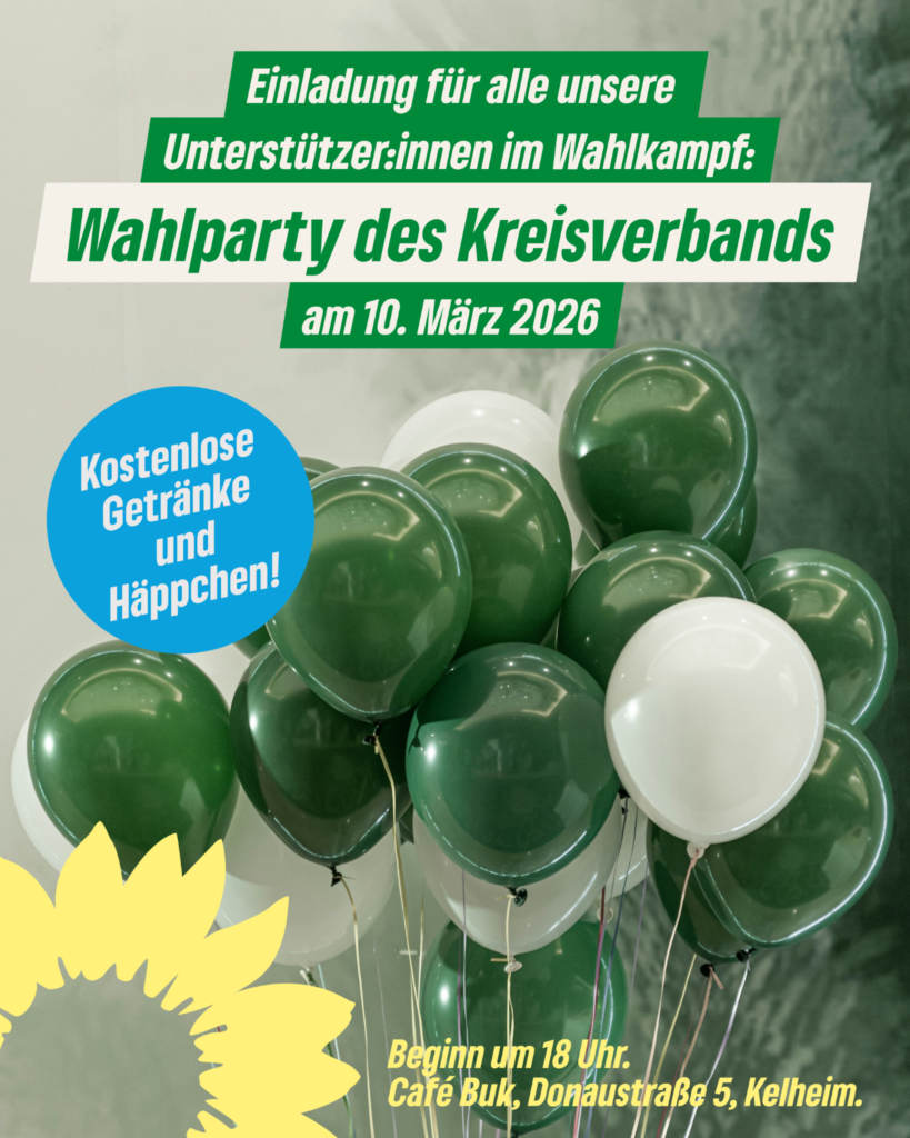 Der Kreisverband lädt herzlich zu einer Wahlparty, zwei Tage nach der Wahl: Am Dienstag 10.03. um 18 Uhr im Café Buk in Kelheim, Donaustraße 5 ein.
